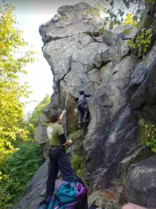 One of our Trail Life dad’s, Don, took us out to do intro rock climbing and to assess adding rock climbing to our Trail Life activities. He showed us how to properly belay, three important knots, and safety while climbing and lowering. We looked at two sites, one for younger climbers and older climbers.